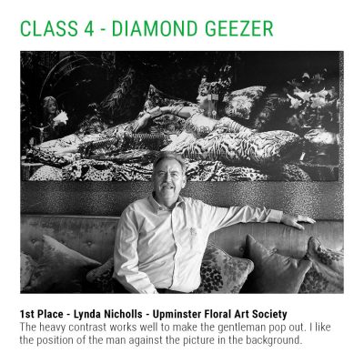 I thoroughly enjoyed judging these two classes. Some delightful work and inspired designs. A good class of exhibits with mainly traditional features. Pressed flowers can be difficult to use and so space, form and texture needs careful choice and consideration of plant materials. Some exhibits were overfull with pressed flowers of similar texture, shape and size. Additionally, some frames were a little visually heavy. Greater use of contrast would have improved many of the entries. As in Class 1, photography did not do full justice to many of the exhibits. Placement, position and lighting need some experimentation.